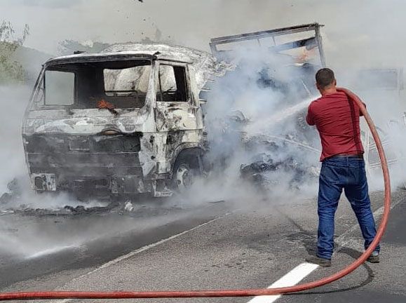 Um caminhão pertencente a transportadora RD de São João Nepomuceno que transportava roupas com destino a São Paulo foi completamente destruído por um incêndio na rodovia Vital Brasil (MG-267), no trevo de acesso a Bom Jardim de Minas. As chamas teriam começado de forma repentina e se espalharam rapidamente, consumindo todo o veículo em poucos minutos.