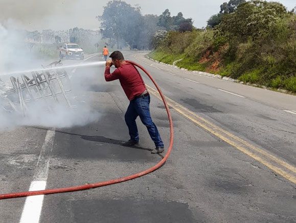 Com a chegada da Polícia Militar de Bom Jardim de Minas, o Grupamento de Combate a Incêndio do município foi acionado. Um caminhão-pipa atuou no local, conseguindo debelar os focos restantes das chamas. Durante o incêndio, houve derramamento de óleo diesel na pista, o que contribuiu para que o fogo se alastrasse também para a vegetação às margens da rodovia levando a ser acionada também a Polícia Ambiental.